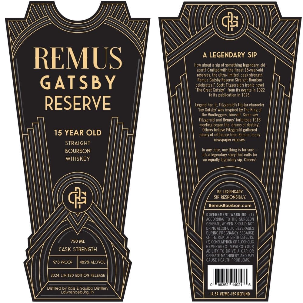 "How about a sip of something legendary, old sport? Crafted with the finest 15-year-old reserves, the ultra-limited, cask strength Remus Gatsby Reserve Straight Bourbon celebrates F. Scott Fitzgerald’s iconic novel “The Great Gatsby”, from its events in 1922 to its publication in 1925.