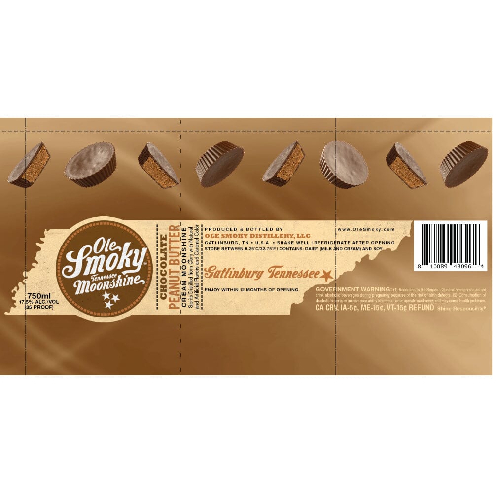 Indulge in the rich and irresistible fusion of flavors with Ole Smoky's Chocolate Peanut Butter Cream Moonshine. Crafted with precision by the renowned Ole Smoky Distillery in Gatlinburg, TN, USA, this 750ml bottle delivers a harmonious blend of velvety chocolate and creamy peanut butter, creating a decadent moonshine experience.