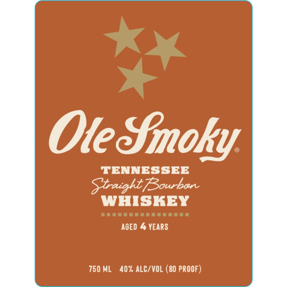 Smooth Tennessee whiskey made in the mountains, enjoyed anywhere. Ole Smoky 4 Year Old Tennessee Straight Bourbon is bottled by Ole Smoky Distillery, Gatlinburg. TN.