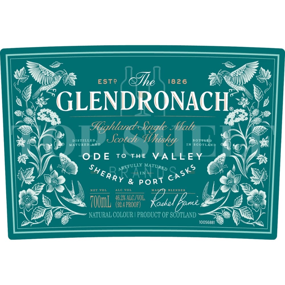 Glendronach Ode to the Valley Highland Single Malt Scotch is our most alluring, fruit-filled expression within The Master’s Anthology. Matured in a combination of ruby port casks from the Douro Valley in Portugal, and our signature sherry casks, presenting notes of floral nectar with succulent ripe summer berries.